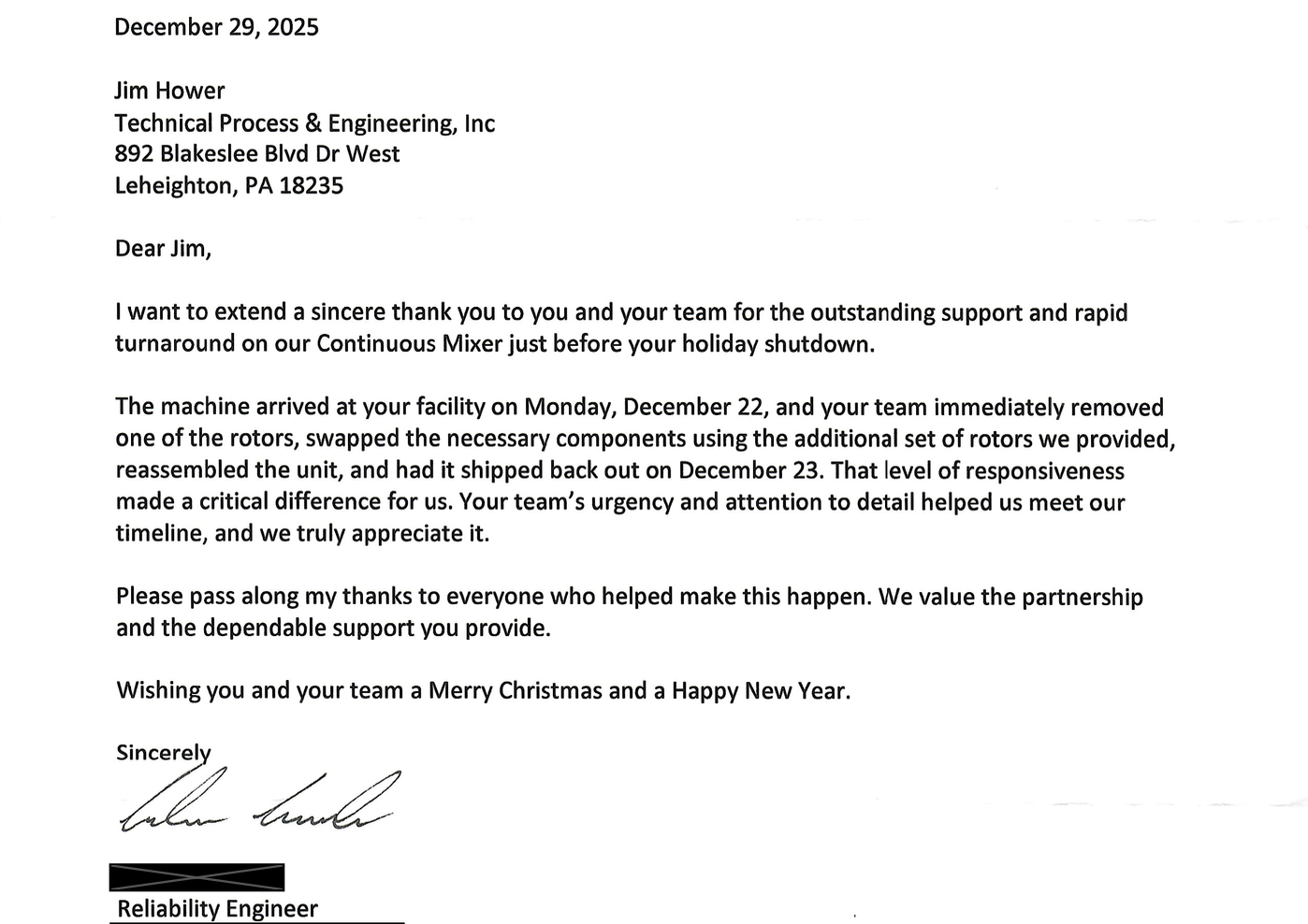 Customer Letter